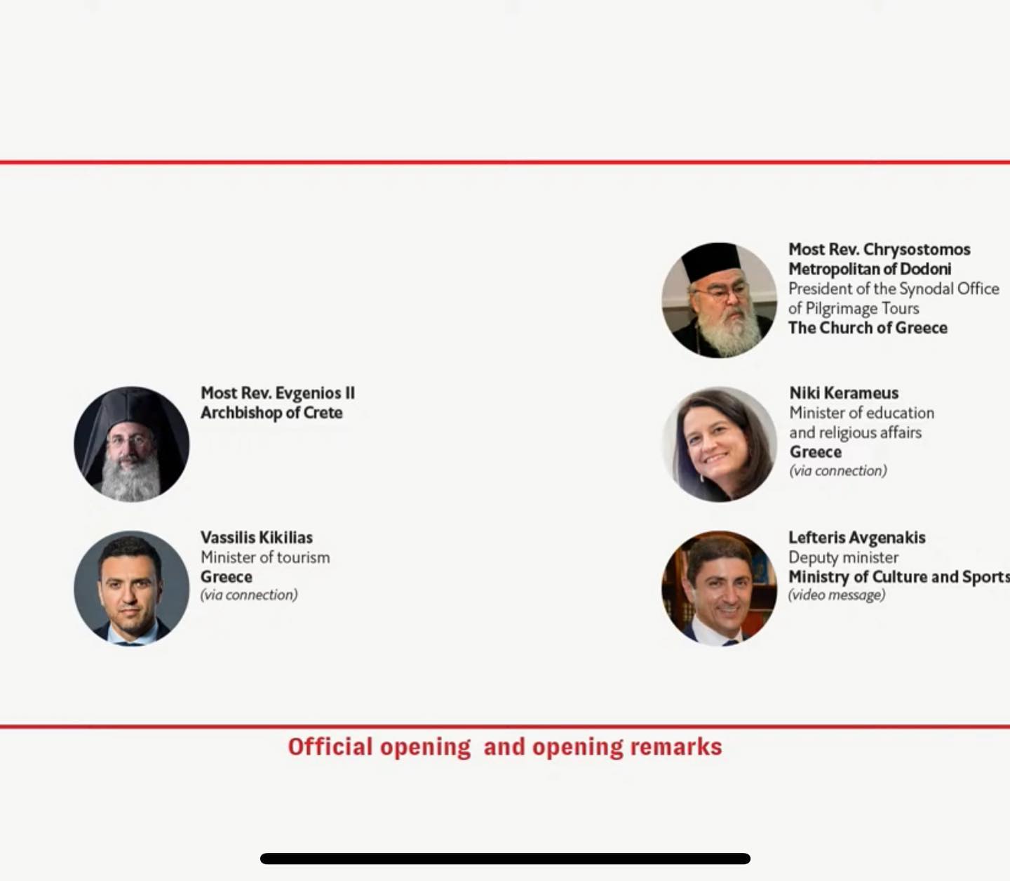 • Μητροπολίτης Δωδώνης κύριος Χρυσόστομος, πρόεδρος του Συνοδικού Γραφείου Προσκυνηματικών Περιηγήσεων, Εκπρόσωπος της Εκκλησίας της Ελλάδος